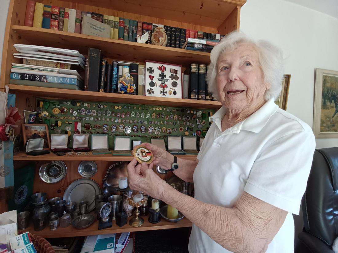 Die Chronik der königlich privilegierten Feuerschützengesellschaft bildet noch andere Besonderheiten ab: “Prinz Albert von Bayern” sei ein gern gesehener Gast bei den “Privilegierten” gewesen und “Seine Königliche Hoheit Kronprinz Rupprecht” (zu diesem Zeitpunkt allerdings gar keine Königliche Hoheit mehr) habe Ehrenpreise übermittelt, so liest man. Zu erwähnen sind außerdem die Erfolge der Ebersbergerin, Centa Süß, denn sie hat die Vereinsgeschichte entscheidend geprägt: Sie war Mitglied in der Frauennationalmannschaft, hat mit dem Kleinkalibergewehr den Titel in der Deutschen Meisterschaft erzielt und 23-mal erfolgreich verteidigt, zudem hielt sie viele Jahre lang den Deutschen und Europäischen Rekord. Die bayerischen Siege habe sie aber nie gezählt, erzählt die rüstige 95-Jährige. Die lange Reihe von Medaillen in ihrem Regal aber zeigt: Es müssen sehr viele gewesen sein. Zuletzt habe sie bei einem internationalen Damenwettkampf die Goldmedaille gewonnen, sagt sie. “Eine Weltmeisterschaft für Damen gab es zu dieser Zeit noch nicht.” Nach ihren Vorstellungen habe eine Ebersberger Handschuhfabrik einen Lederhandschuh für Sportschützen gefertigt. Mit dem habe sie Konkurrenten aus dem Ausland beeindruckt und damit internationale Sportler ausgestattet.